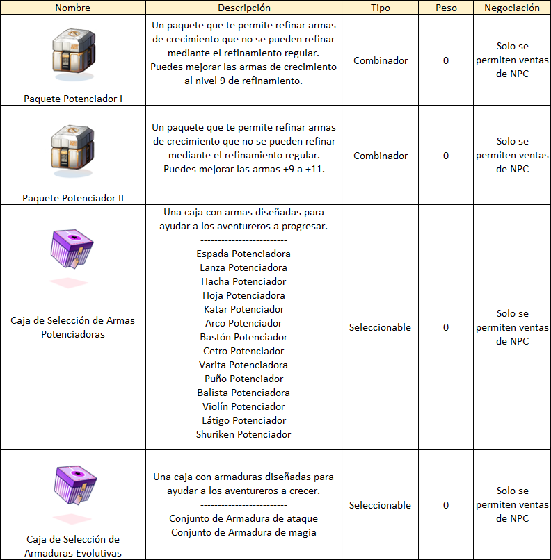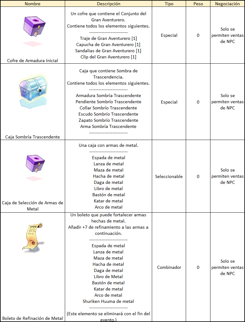 - Solo la Caja Evolutiva (1) puede transferirse al Almacén de Kafra. Las siguientes cajas serán exclusivas del personaje que abra la primera caja.