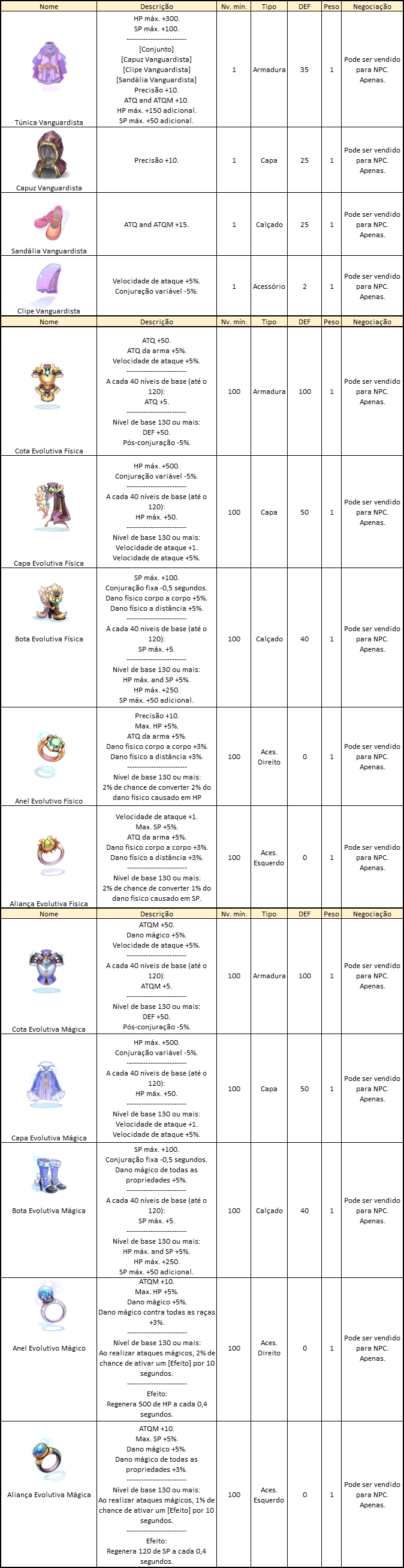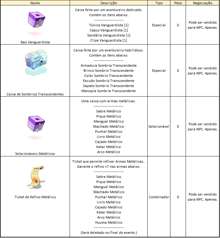 - Somente a Caixa Evolutiva (1) pode ser transferida para o Armazém da Kafra. As próximas caixas serão exclusivas do personagem que abrir a primeira caixa.