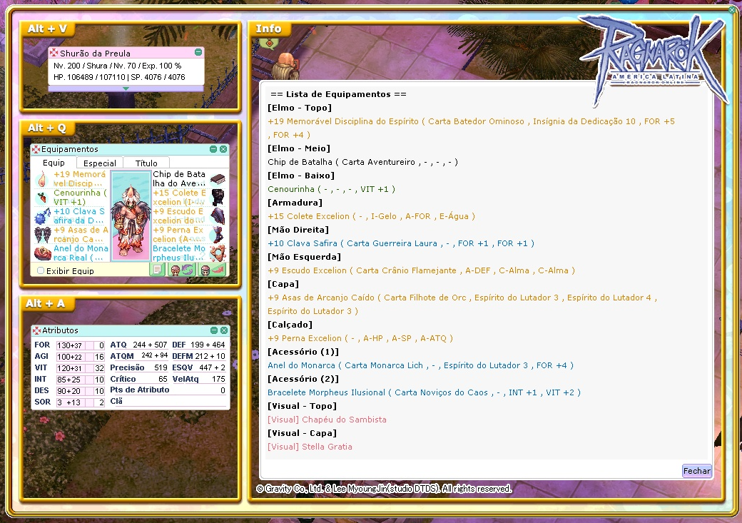 Você poderá posicionar sua janela de informações, atributos e equipamentos nos espaços indicados na janela e tirar um belo screenshot!